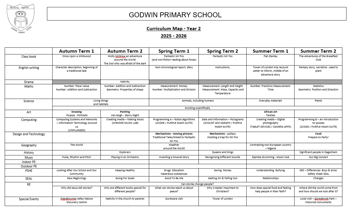 Year 2 Curriculum Map